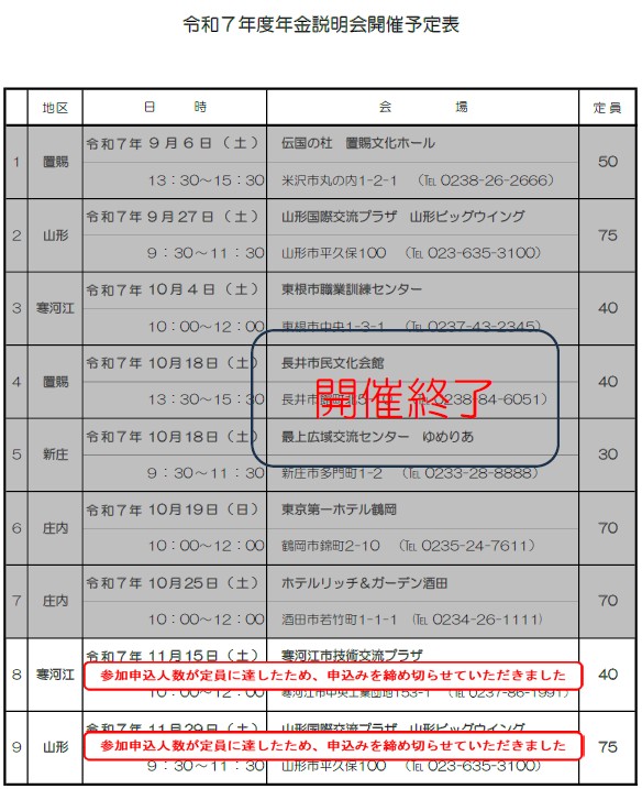 年金説明会に関する照会窓口 山形県社会保険協会 電話023-642-6261